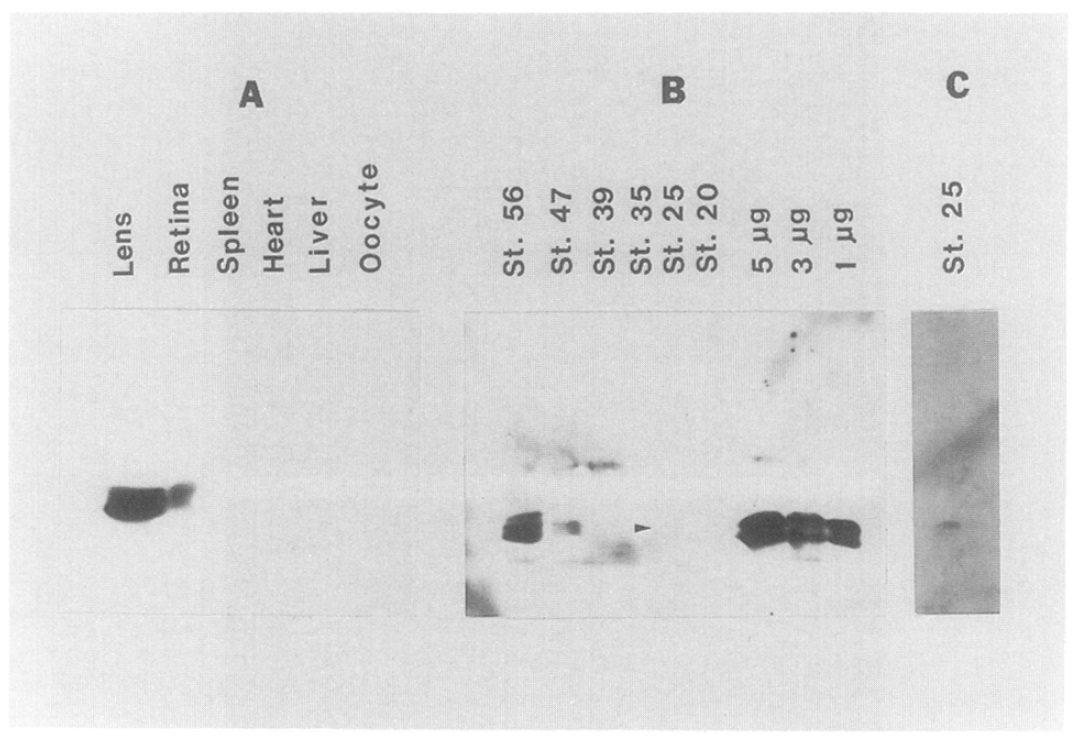 Immunological studies on gamma crystallins from Xenopus: localization, tissue specificity and developmental expression of proteins.