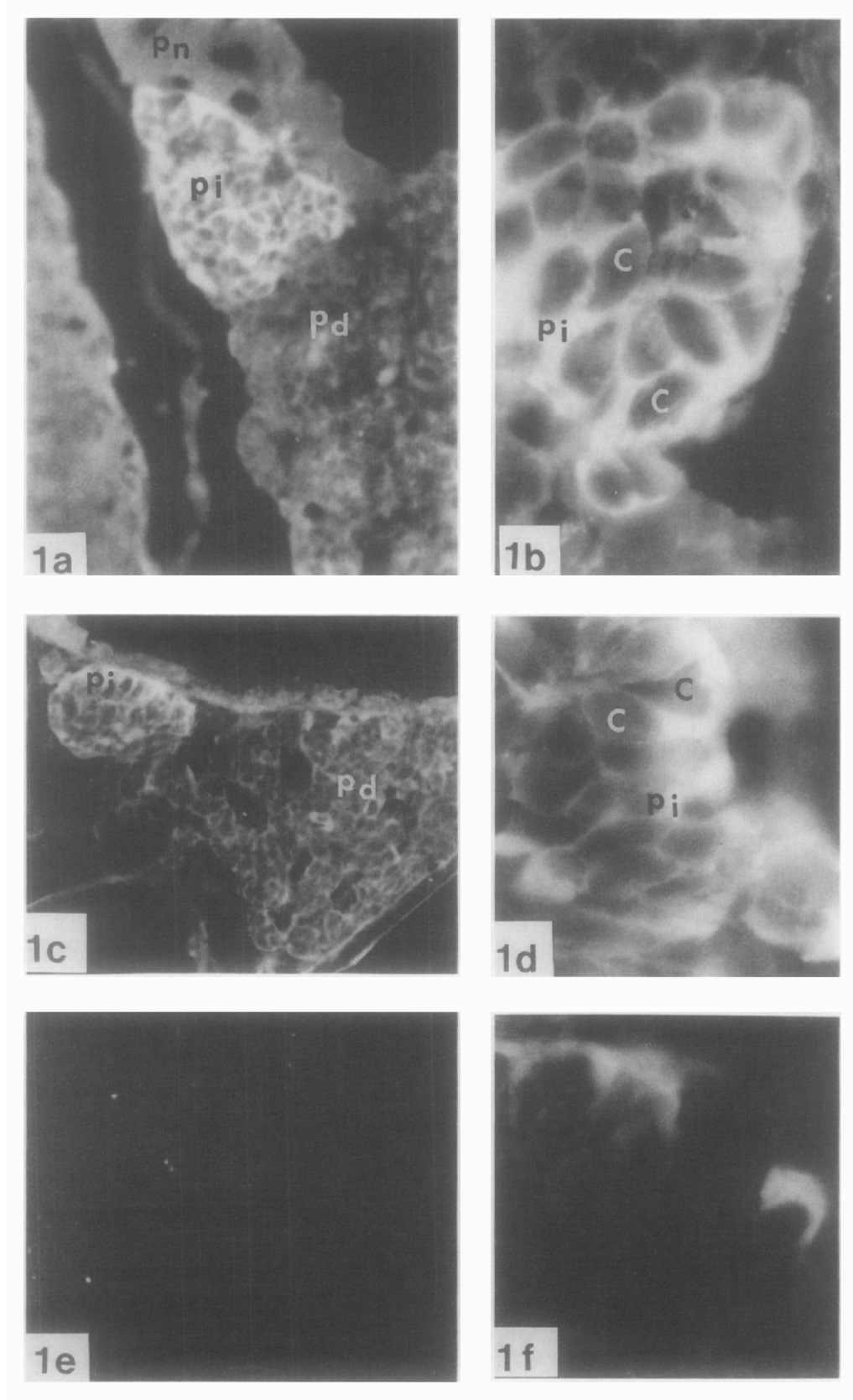 lobe; the neural part (pn) remains unstained. Immunofluorescence is confined to the cytoplasm of the