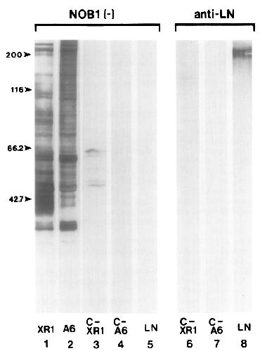 (lanes 1-5) and anti-laminin antibodies (lanes 6-8). Lane 1