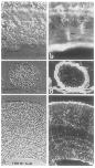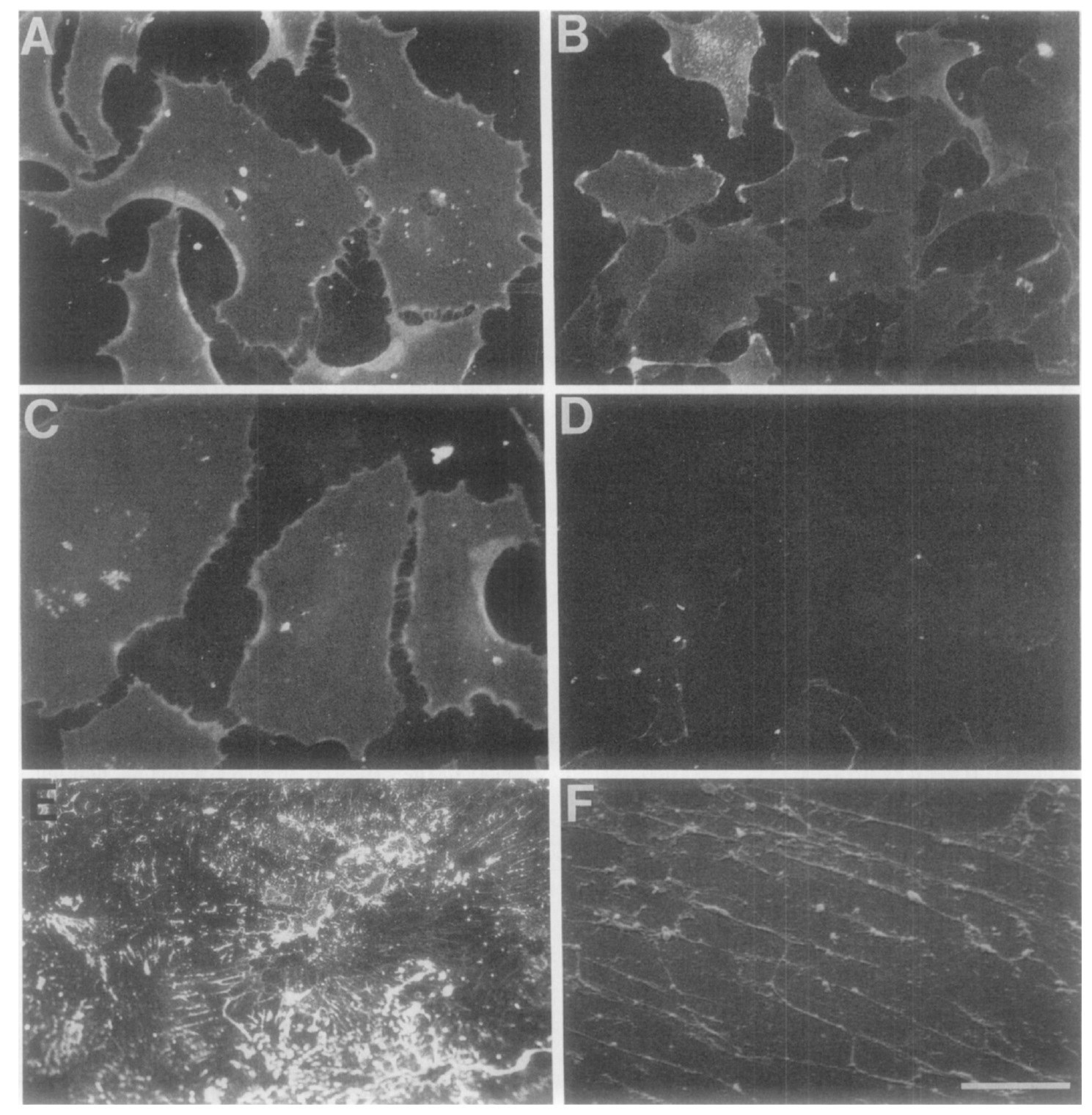 Scanning electron micrograph of an XRl conditioned collagen substrate. Calibration bar, A-E, 25 pm; F, 5 pm. |