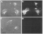 FIG. 9. NOB1 antibody labeling. (A, B) NOB1 labeling of XRl cells (A) and A6 cells (B). (C, D) Labeling of XRl cells (C) and A6 cells (D) using