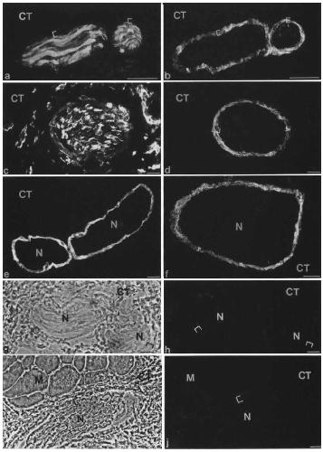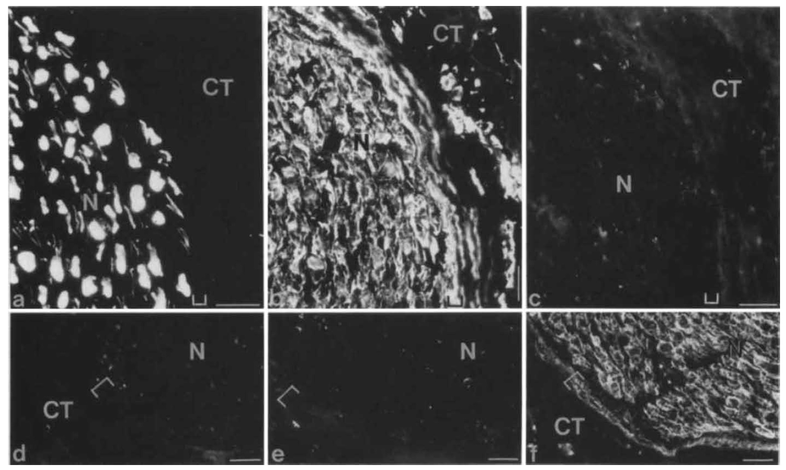 of the nerve (N) are brightly stained with a monoclonal antibody directed against the neurofilarnent protein NF-L. b A subset of