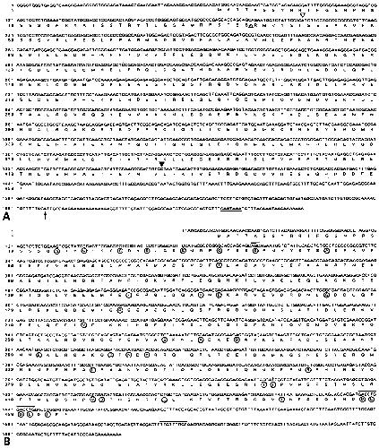 Fig. 4. Nucleotide sequence and deduced amino acid sequence of cloned Xenopus laevis vimentins. (A) Combined sequence of clones pXenViml, containing nucleotides 1-1688 (indicated by an arrow), and pXenVim3, containing nucleotide 1367 (indicated by an arrowhead) to the 3'-end of the clone. The clones are identical in the overlapping region. Differences found in the pXenVim2 sequence are indicated by an upward triangle (insertion of an AGC triplet coding for serine) and a downward triangle (substitution of T for C without change of the coded amino acid). (B) Sequence of clone pXenVim4. Major differences of the nucleotide sequence to pXenViml are overlined and the amino acid changes are encircled. |
