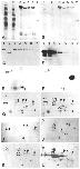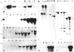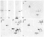 Fig. H- Analysis of various fractions from oocytes and unfertilized eggs of Xenopus laevis for the presence of vimentin by SDS-PAGE and immunoblotting with different antibodies. (A) Proteins transferred to nitrocellulose were stained by Ponceau S after the alkaline phosphatase immunostaining reaction shown in B. Lane 1, proteins recovered in the 100 000 g supernatant from total egg extracts (HSS proteins), concentrated by precipitation with acetone, 30-egg equivalents; lane 2, HSS proteins directly loaded, 12-egg equivalents; lane 3, high-salt-buffer-resistant « a fraction of the low-speed pellet from egg homogenates; lane " 4, insoluble fraction from high-salt-buffer-extracted material 1 2 3 4 5 6 7 1 2 3 4 5 6 7 pelleted at lOOOOg after an initial 800g centrifugation; lane 5, high-salt-buffer-resistant material pelleted at 800g; lane 6, high-salt-buffer-resistant material pelleted at lOOOOg. Lanes 3-6, 20-egg equivalents. The prominent high molecular weight band in lanes 3-6 contains the abundant major yolk protein. Lane 7, total cytoskeletal proteins of XLKE-A6 cells, 2 fig, representing approximately 0-2 ng vimentin (see Fig. 2A). (B) Immunoreaction corresponding to A, developed until background staining appeared, as shown by the unspecific reaction of the Mr â100000 yolk protein band (lanes 3-6) which was also seen when blots were only incubated with second antibody. Specific vimentin reaction is only seen in XLKE-A6 cells (lane 7). (C,D) Calibration of the sensitivity of antibody VIM-3B4 for the detection of Xenopus vimentin. (C) For quantification, Xenopus vimentin synthesized in E. coli transfected with clone pXenViml (cf. Magin et al. 1987) was dissolved in electrophoresis sample buffer, and a 10 uL sample was applied to the gel (lane 2). For comparison, bovine serum albumin was loaded as follows: lane 1, 1-4 fig; lane 3, l-2^g; lane 4, l^g; lane 5, 0-8jUg; lane 6, 0-6f«g; lane 7, 0-4//g. As estimated after staining with Coomassie brilliant blue, the applied amount of vimentin corresponded to approximately l^g of bovine serum albumin. (D) Immunoblot analysis of recombinant Xenopus vimentin diluted to various degrees: lane 1, l^g; lane 2, 500 ng; lane 3, 100 ng; lane 4, 50 ng; lane 5, 10 ng; lane 6, 5ng; lane 7, 1 ng. Note faint reaction in lane 6, showing that 5 ng are detectable. The band of somewhat higher SDS-PAGE mobility is proteolytically trimmed vimentin of Mr ~38000. Blots shown in B and D have been processed in parallel. (E,F) Examination of cytoskeletal fraction from unfertilized eggs with guinea pig antibodies to vimentin (E), in comparison with reference vimentin (F). (E) Autoradiogram of an immunoblot analysis of proteins from 15 unfertilized eggs separated by two-dimensional gel j - a l a electrophoresis, followed by incubation of nitrocellulose blots with guinea pig antibodies to vimentin and 125Ilabelled protein A. (F) Parallel experiment to that shown in E with cytoskeletal proteins from Chinese hamster ovary fibroblasts containing approximately l,ug vimentin. Both blots were exposed for 3 days at 70°C using intensifying screens. (G-L) Examination of the presence of vimentin in oocytes of Xenopus by two-dimensional gel electrophoresis, followed by immunoblotting. (G) Cytoskeletal proteins from 150 mg oocytes were separated by two-dimensional gel electrophoresis, transferred to nitrocellulose and stained with Ponceau S. The bracket denotes the major oocytes type II cytokeratin l/8, the three arrowheads denote a triplet of unidentified cytoskeletal proteins of Mr 56000-60000. Positions of cytokeratin 2 and 3, corresponding to human cytokeratin 18 and 19 and a group of basic cytokeratins of Mr â56000 are also indicated. (H) The same amount of protein as shown in G was mixed with cytoskeletal proteins from XLKE-A6 cells for the identification of the position of Xenopus vimentin (arrow) relative to the oocyte proteins. Symbols as in G. (I) Immunoblot analysis of cytoskeletal oocyte proteins with monoclonal antibody PK VI. Note absence of staining at the position of vimentin (arrows in H and J). Weak staining of five polypeptides of Mr 56000-60000 is indicated by arrowheads. (J) Immunoblot analysis of a mixture of cytoskeletal proteins from oocytes and XLKE-A6 cells with monoclonal antibody PK VI. Note staining of cytokeratin 1/8 and vimentin but not component X. (K) Immunoblot analysis of cytoskeletal oocyte proteins with antibody anti-IFA. Note staining of cytokeratin 1/8 but absence of staining at the position of vimentin. Note weak staining of triplet polypeptides of Mr 56000-60000. (L) Immunoblot analysis of a mixture of cytoskeletal proteins from oocytes and XLKE-A6 cells with anti-IFA. Vimentin as well as several cytokeratins are heavily stained, thus demonstrating that anti-IFA reacts with Xenopus vimentin. Comparison of L and K shows absence of detectable vimentin in K. |