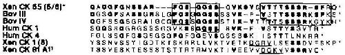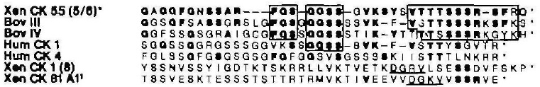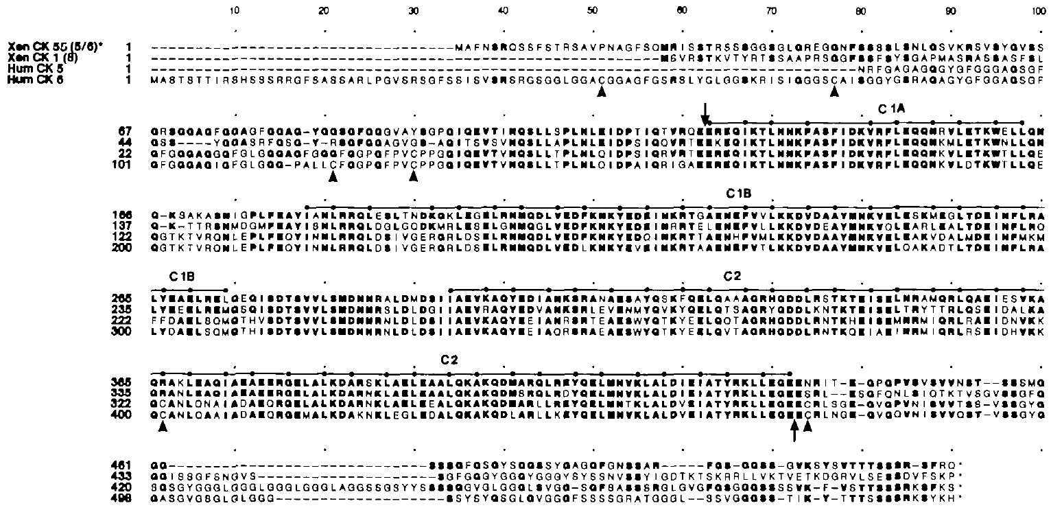 bars. Bold-faced letters denote amino acids identical in Xenopus cytokeratin XenCK55(5/6) and at least one of the