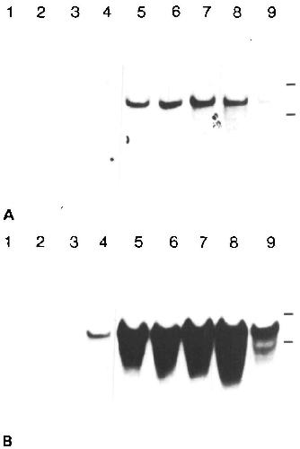 reaction with a -2-4 kb RNA (lanes 5 to 8). The mRNA