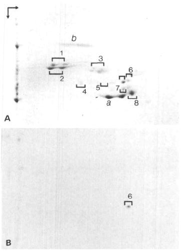 Fig. 4. (A) Coomassie blue-staining. (B) Autoradiograph