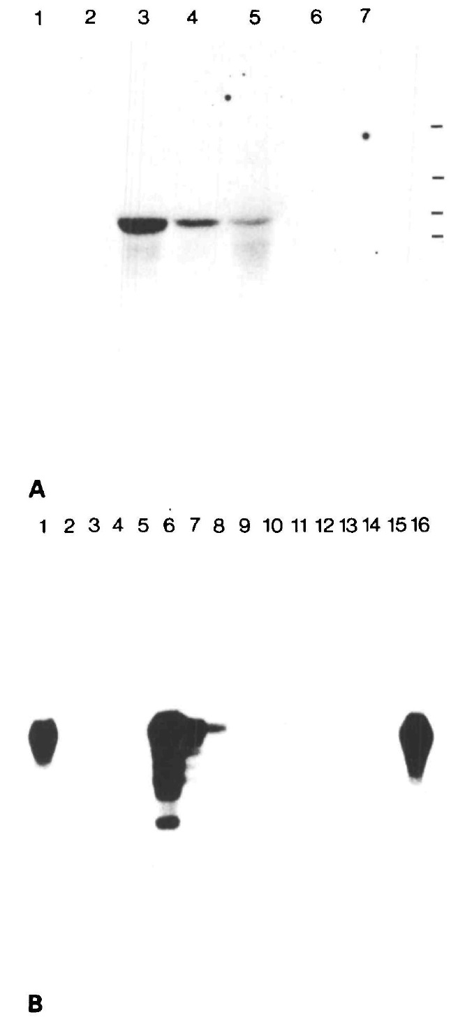 RNA (lanes 3, 4 and 7) or l^g poly(A)+RNA (lanes 1,