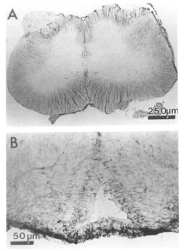 frozen section of adult spinal cord showing intense anti-mammalian