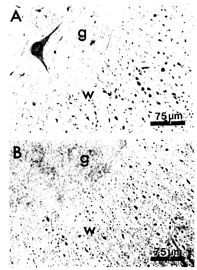 in the white matter (w). In the adult, the XNF-M antibody (B)