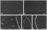 sections were stained with XEPI-1 (A), -2 (B), -3 (C), -4 (D). or -5 (E) and FITC-conjugated antimouse IgG. C and D