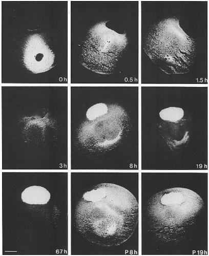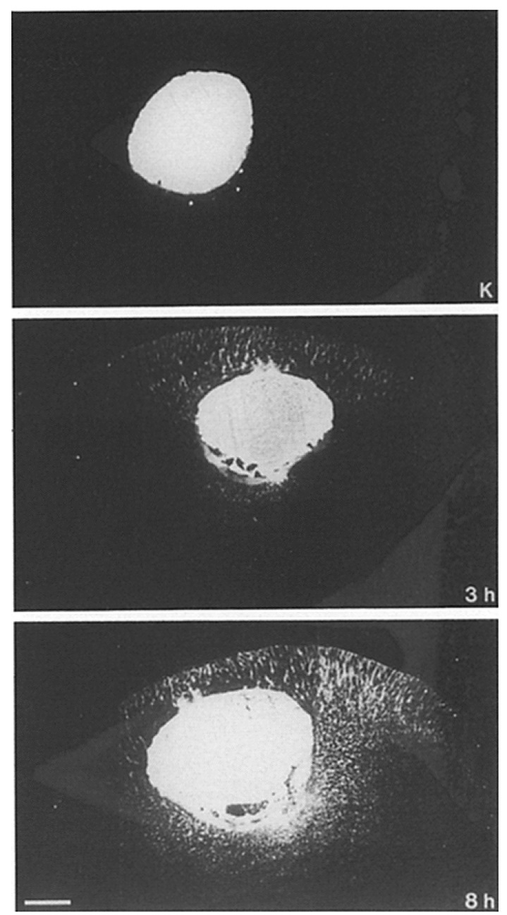 with mAb b6-3BT, which is directed against X. borealis nuclear protein NI. Dark areas that are seen in the injected nucleoplasm (see 0 h)