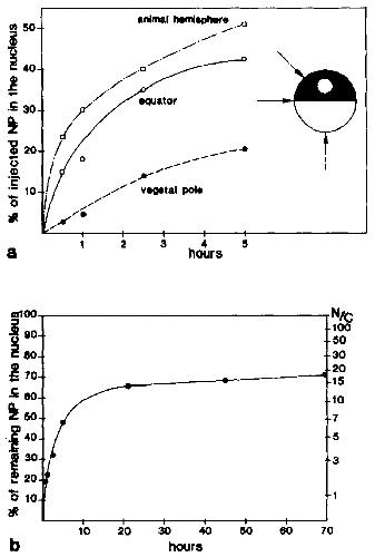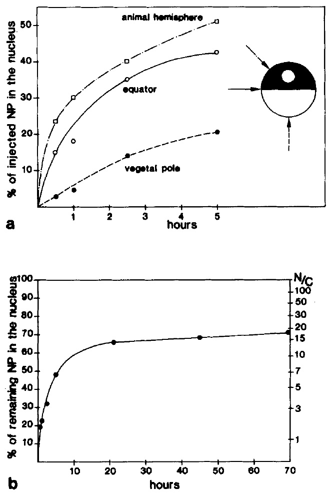 nuclear accumulation of nucleoplasmin on site of injection. Oocytes