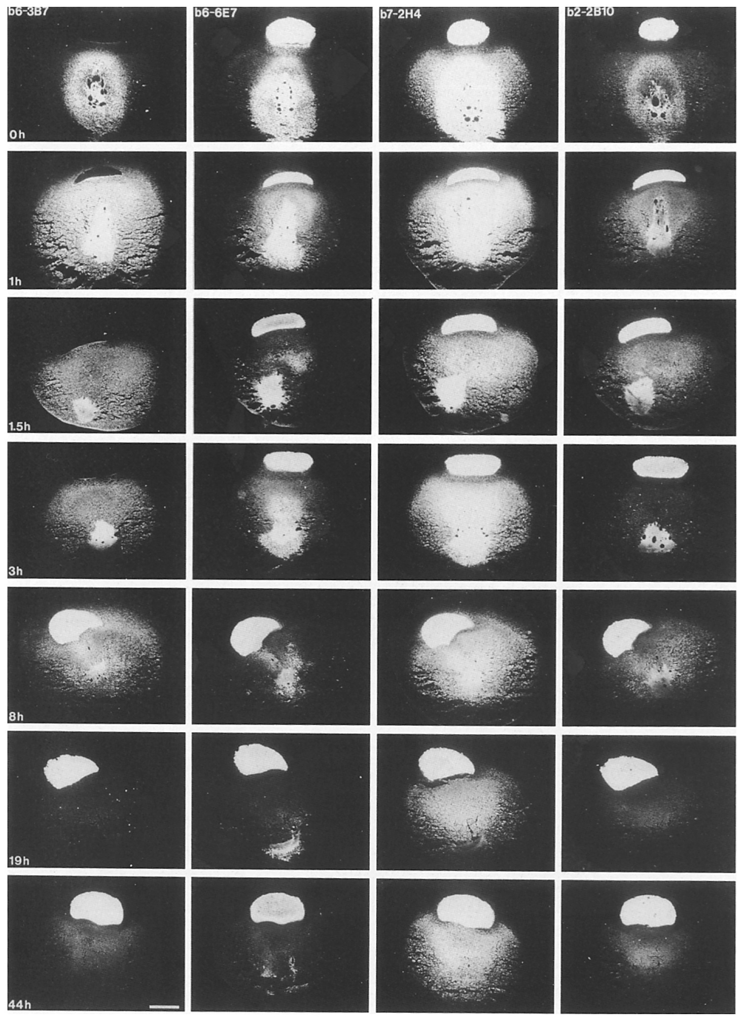 (directed against N4), and b2-2B10 (directed against NI). Staining with mAb b7-2H4 44 h after injection is background (see text). Bar,