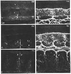 Fig. 2. Anti-tenascin (77V) and anti-fibronectin (FN) staining of cross-sections through different axial levels of a 54h-old