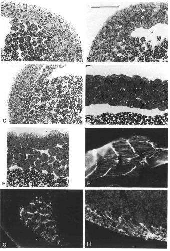 Fig. 1. Differentiation in explanted animal caps after various conditions of early exposure to MIF. (A.B) Sections
