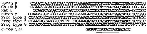 Fig. 5. Conserved promoter sequence shared by vertebrate cytoskeletal actin genes. The sequence downstream of the