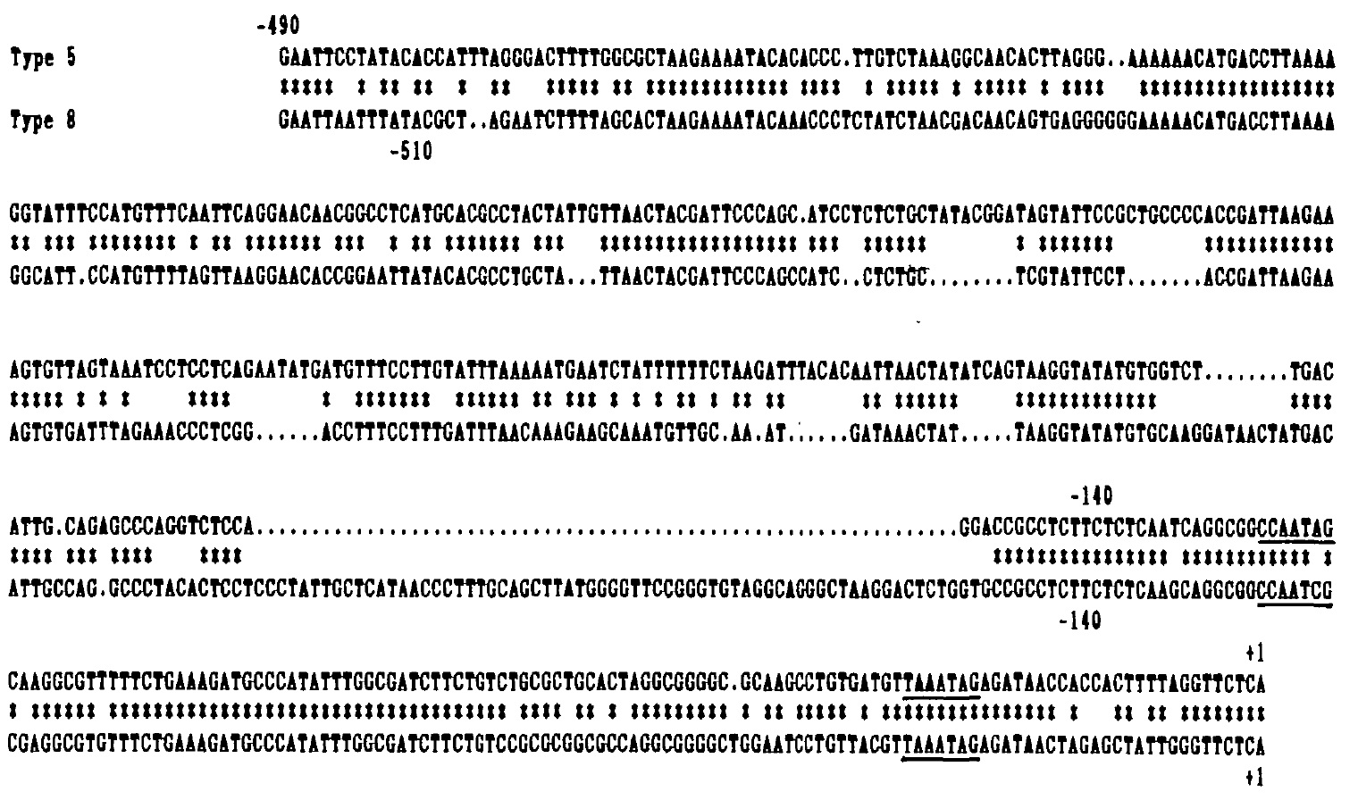 Fig. 2. Nucleotide sequence of type-5 and type-8