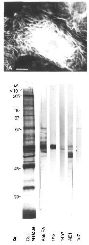 Ih5 labels cytokeratin filaments (Bar, lOjjm).