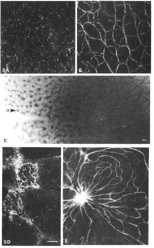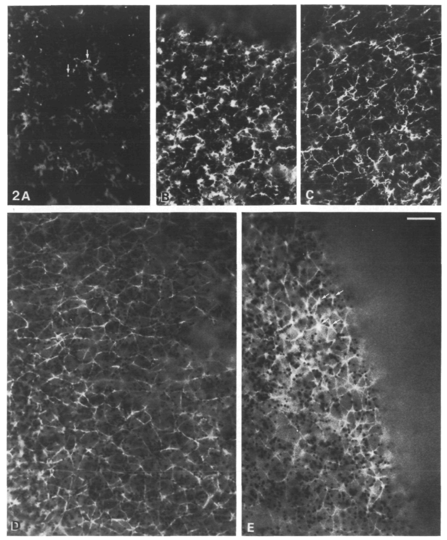 in part D marks lOjnn for parts A,B,D,E; bar in part C marks 10/im.