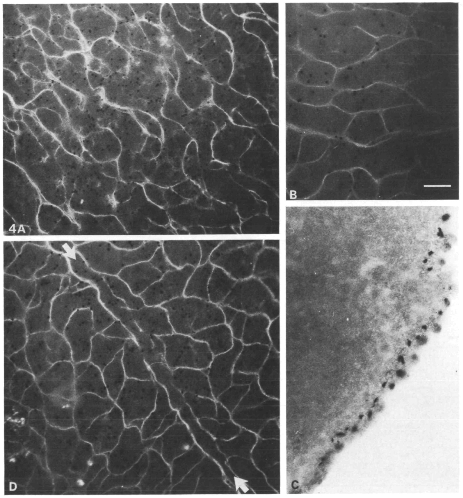 precision (E). Arrows in part E mark vertices of the cytokeratin lattice. The bar in part E marks 10/im for all parts.