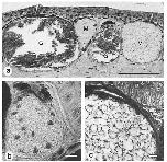 core (arrow), which finally buds off from the organelle (b); nucleus