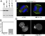 Figure 8. Depletion of anillin by siRNA in HeLa cells. (A) Western blot with anti-anillin of whole cell lysates after treatment with no RNA, control siRNA, or siRNA directed against human anillin. (B) Frequency of multinucleation in control or siRNA-treated HeLa cells. (C) immunofluorescence staining of DNA (blue), anillin (green), and myosin II (red) in HeLa cells treated with control or anillin siRNA. (D) Single frames of YFP- Myosin fluorescence from Movie S4, control, and Movie S8, anillin siRNA. White arrow indicates position of contractile ring. Bars, 5 um. |