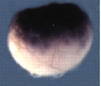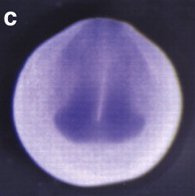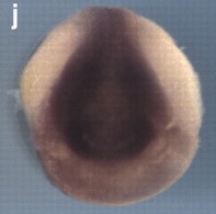 smad2 (SMAD family member 2 ) gene expression in Xenopus laevis embryo, assayed via in situ hybridization, NF stage 18, anterior view, dorsal up. |