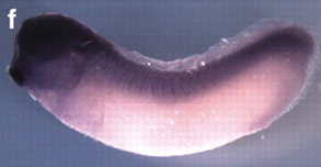 smad2 (SMAD family member 2 ) gene expression in Xenopus laevis embryo, assayed via in situ hybridization, NF stage 28, lateral view, anterior left, dorsal up. |