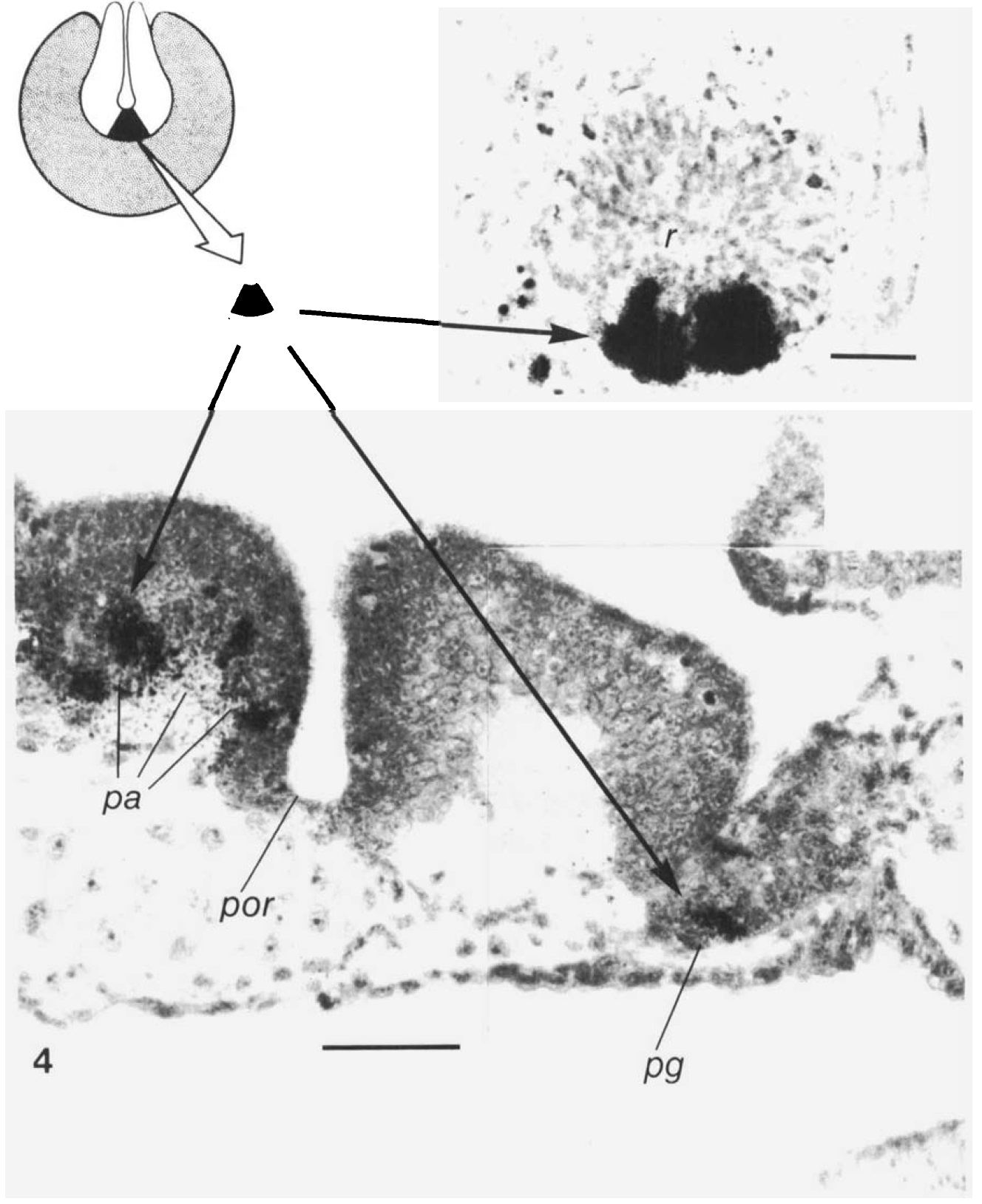 gland; r, retina. Bars, 0-1 mm.