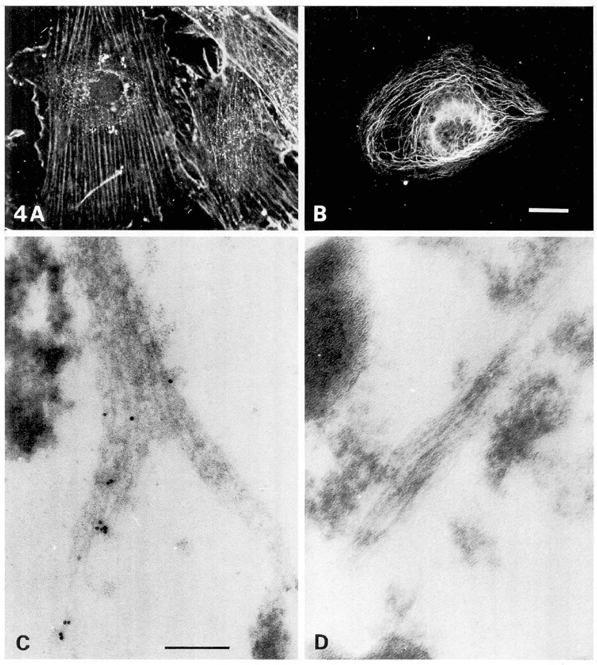 reacts with intermediate filament bundles in the Triton extracts. Bars, 20,um (A,B);