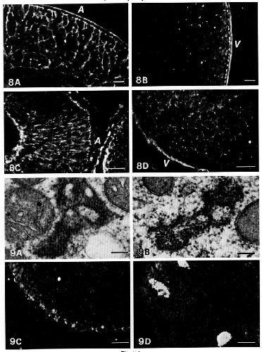 Fig. 8. (A) and (B) show anti-vimentin staining of late vitellogenic oocyte in animal (A)