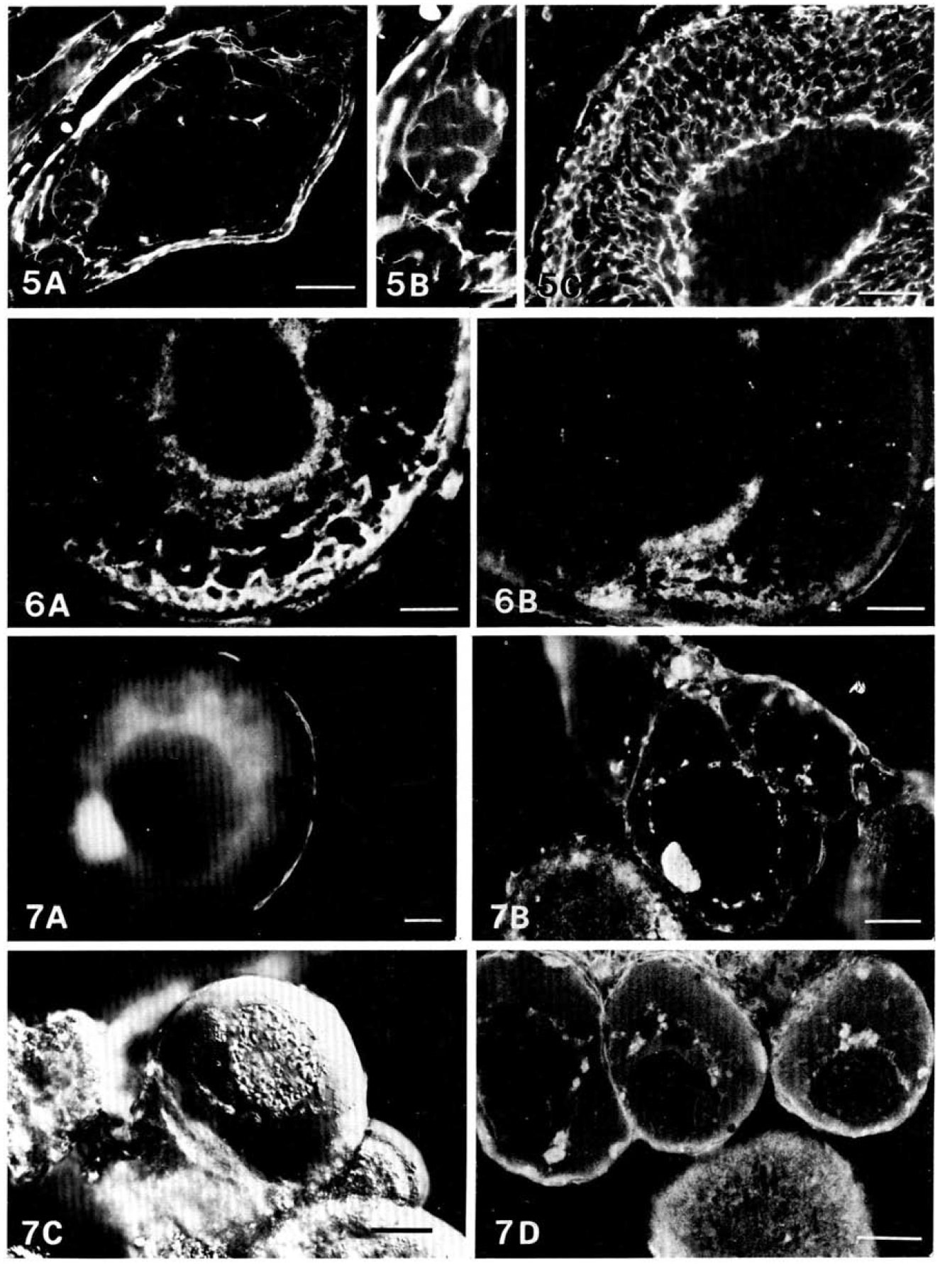 nucleus, and connected to the cytoplasmic matrix, are seen in (C). Scale bars = 25 jwm.