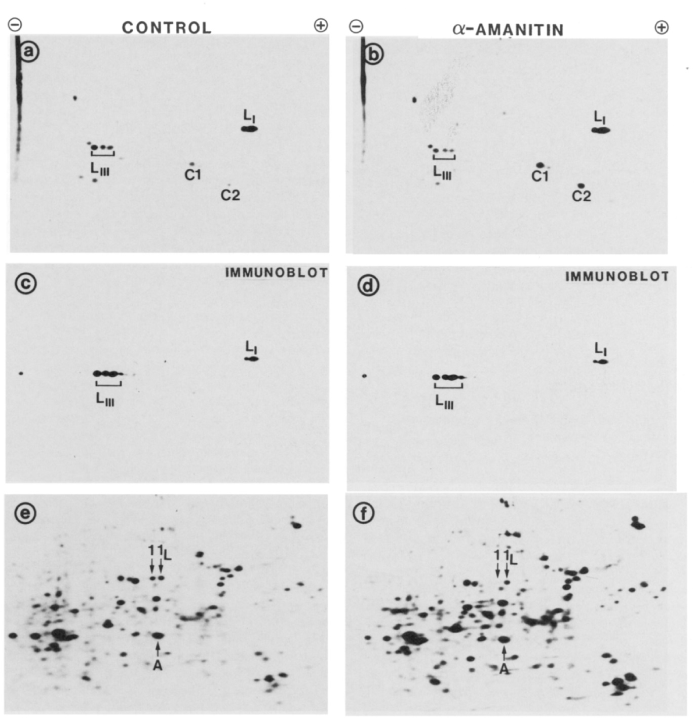 gel electrophoresis. (a, c, and e) labeling in the absence of a-amanitin; (b, d, and f) in the presence of a-amanitin. To visualize the lamin