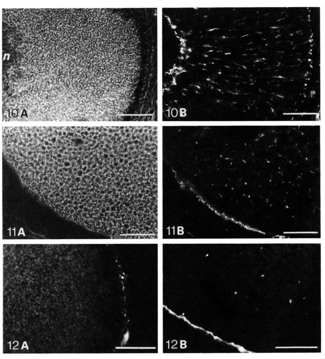 Bars = 50jian. Fig. 10. Animal hemisphere containing nucleus (n). (A) phase