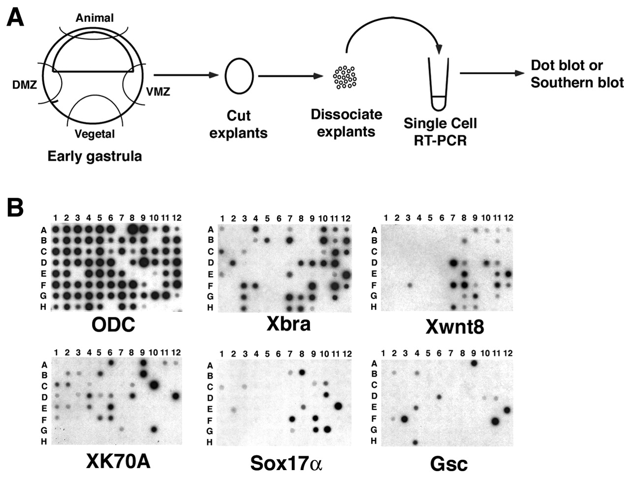 probed for the markers indicated (ODC, Xbra, XK70A, Sox17α,