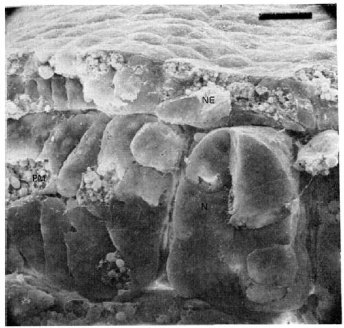 ectoderm (NE), notochord (N) and paraxial mesoderm (PM). Bar represents 25 um.