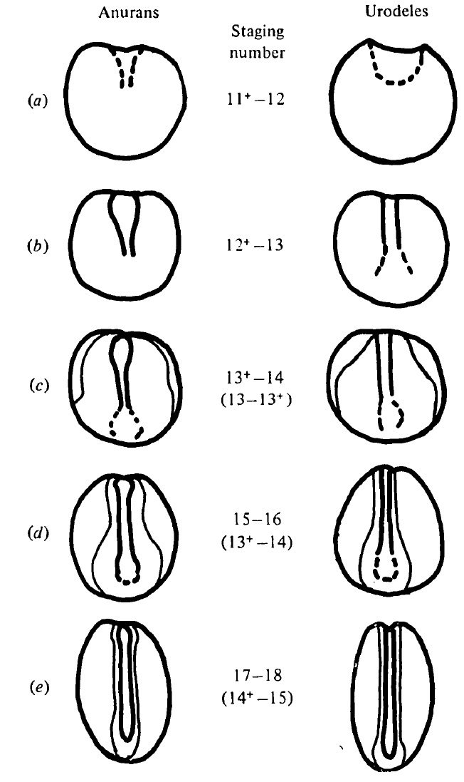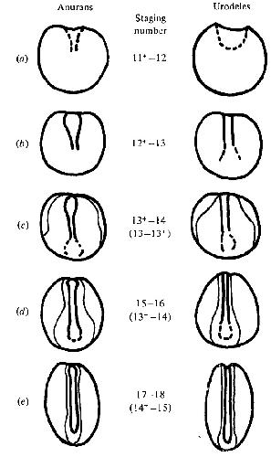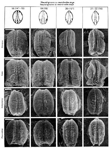 progress made by the neural folds of Ambystoma late neurulae viewed dorsally.