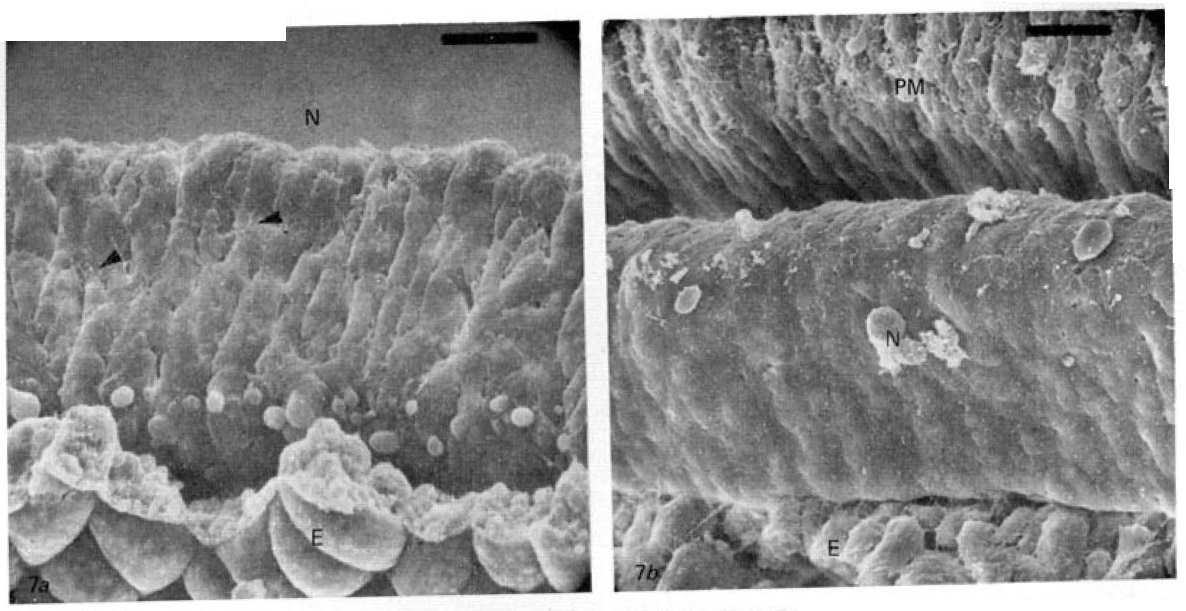 Fig. 2e. Lateral surface of the Xenopus notochord at stage 12+. Endodermal roof