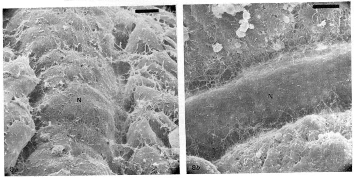 Fig. 8a. Postero-dorsal view of the anterior region of the notochord (N) of Xenopus