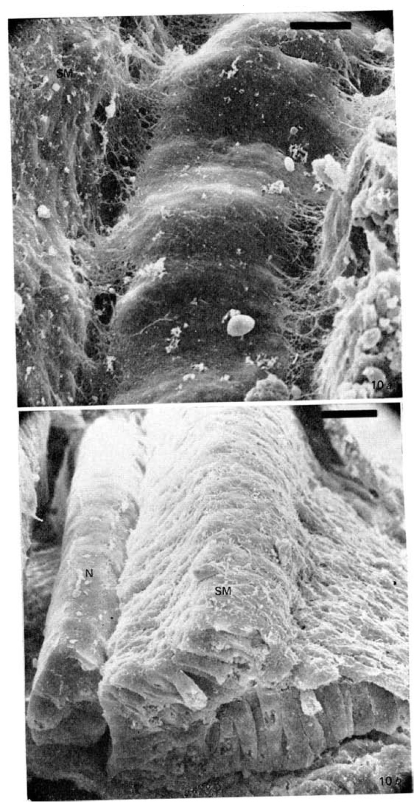 Pig. 10a. Antero-dorsal view of the notochord (N) and somitemesoderm (SM) of
