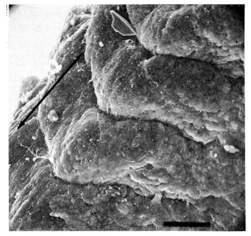 way, as shown by arrow. Bar represents 50um.