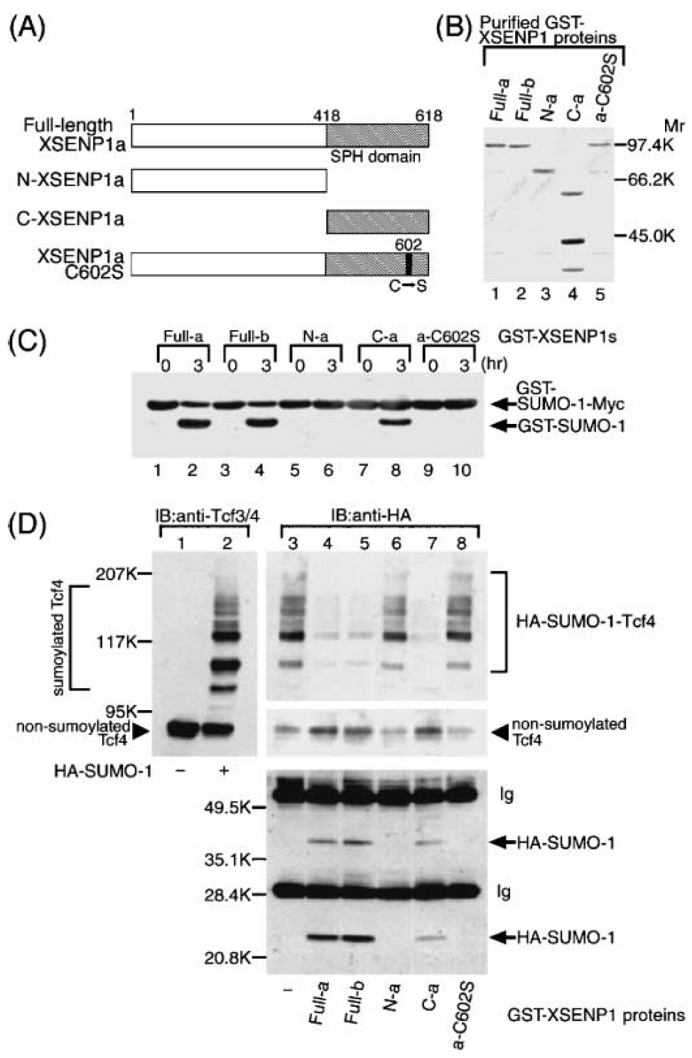 GST-C-XSENP1a (lane 7), or GSTXSENP1aC602S
