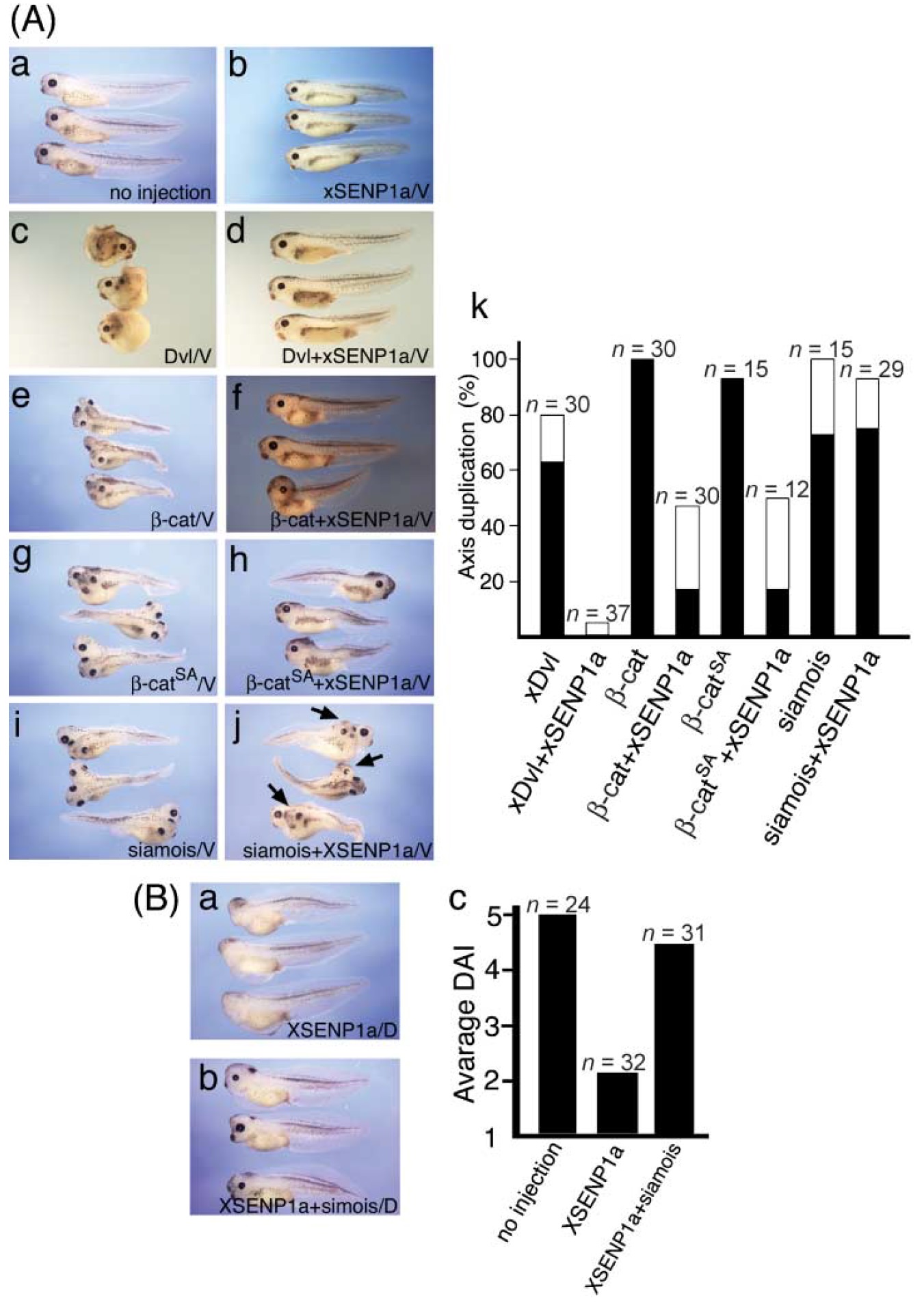 (c); XDvl (500 pg) and XSENP1a (1.0 ng) (d); β-catenin (250 pg)