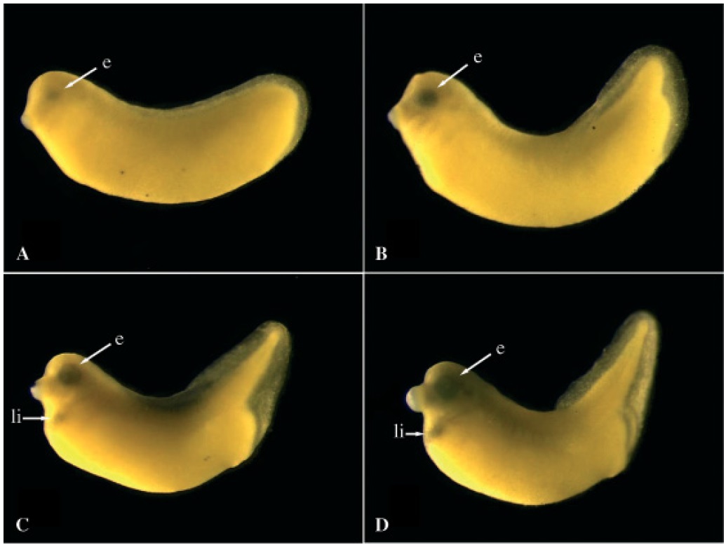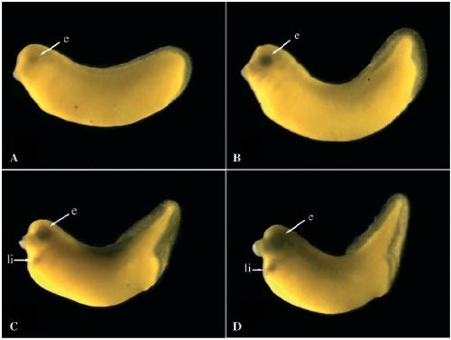 the developing liver (li). lens (l), retinal