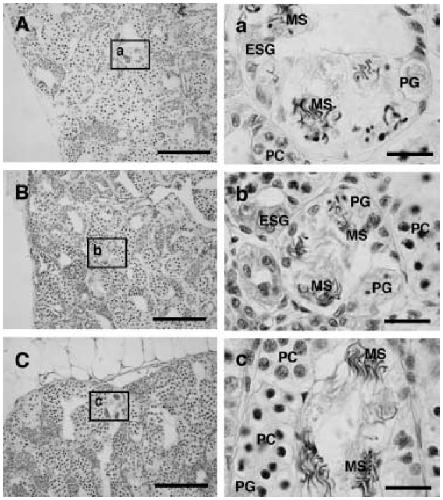 ESG, early secondary spermatogonia; MS, mature sperm; PC,