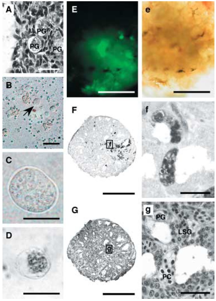 (B), 300 μm (F and G), and 500 μm (E and e), respectively. PG,
