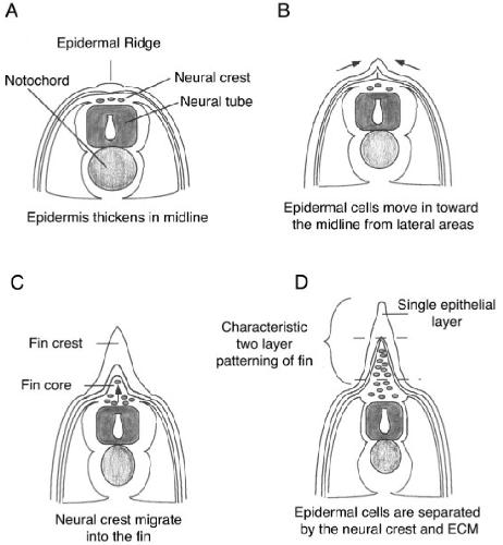 Fig. 1. Diagram representing the stages of fin induction and formation. A: Stage 25.