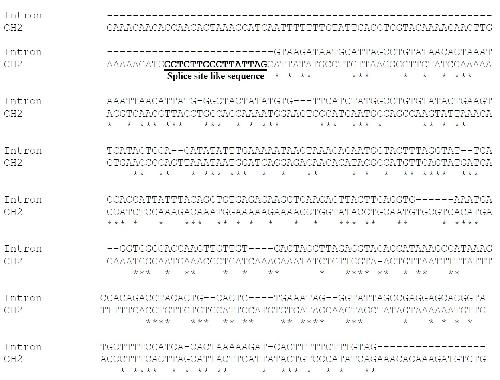 Fig. 16. Sequence comparison of the IgF hinge–CH2 intron and the CH2 exon.