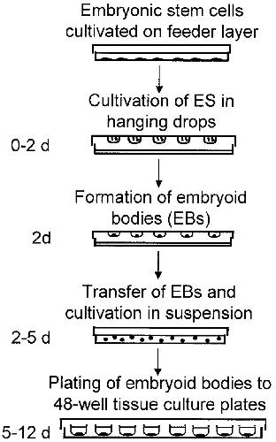 Figure 1. Schematic representation of the experimental protocol used for ES cell differentiation into cardiomyocytes (adapted from Maltsev et al., 1993).